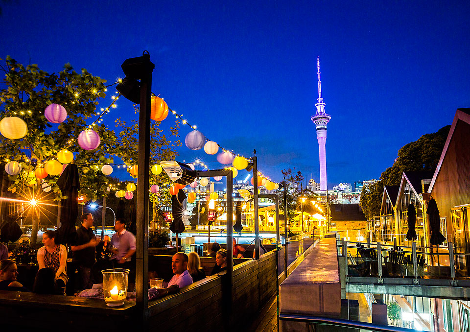 By Kip brook The setting sun casts a warm rosy tint over Rangitoto Island. The tall office towers sp